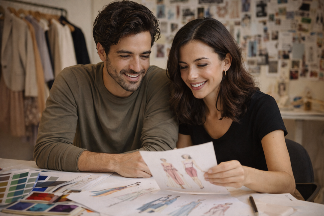 Luis y Ana han tenido pasión por la moda desde muy jóvenes. Ambos se formaron profesionalmente en el mundo del diseño y la industria fashion —Luis estudió Fashion Design, mientras que Ana se especializó en Fashion & Branding. Antes de emprender juntos, trabajaron durante años en distintas empresas del sector, donde adquirieron experiencia, visión y un profundo conocimiento del cliente.